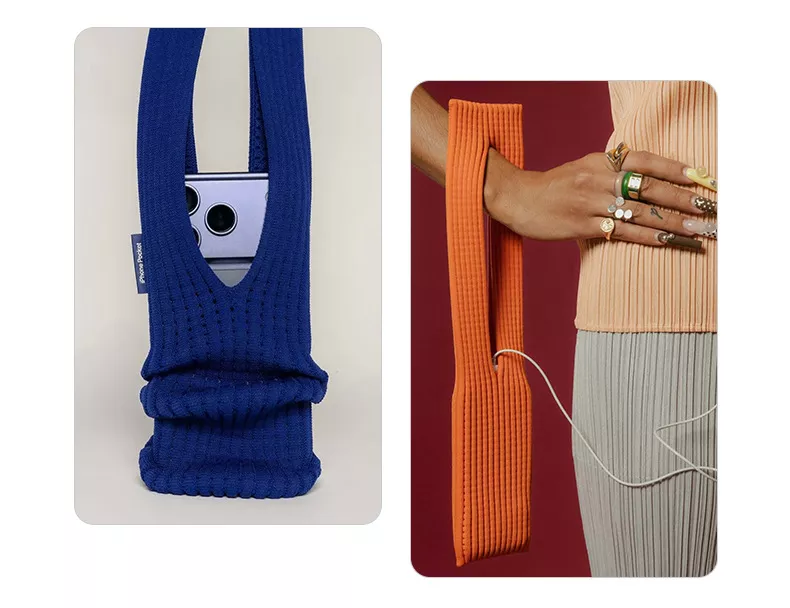 Gone are the days of boring neoprene phone sleeves. The 2025 knit phone pouch is a single-piece 3D-knitted accessory (no seams, no zippers—just one continuous stretch of fabric) designed to cradle your phone while doubling as a wearable accent. The viral Apple x Issey Miyake version (priced at $149–$230) uses a proprietary ribbed mesh knit, but budget-friendly dupes on Amazon (starting at $15) mimic the look with a blend of polyester, nylon, and spandex.